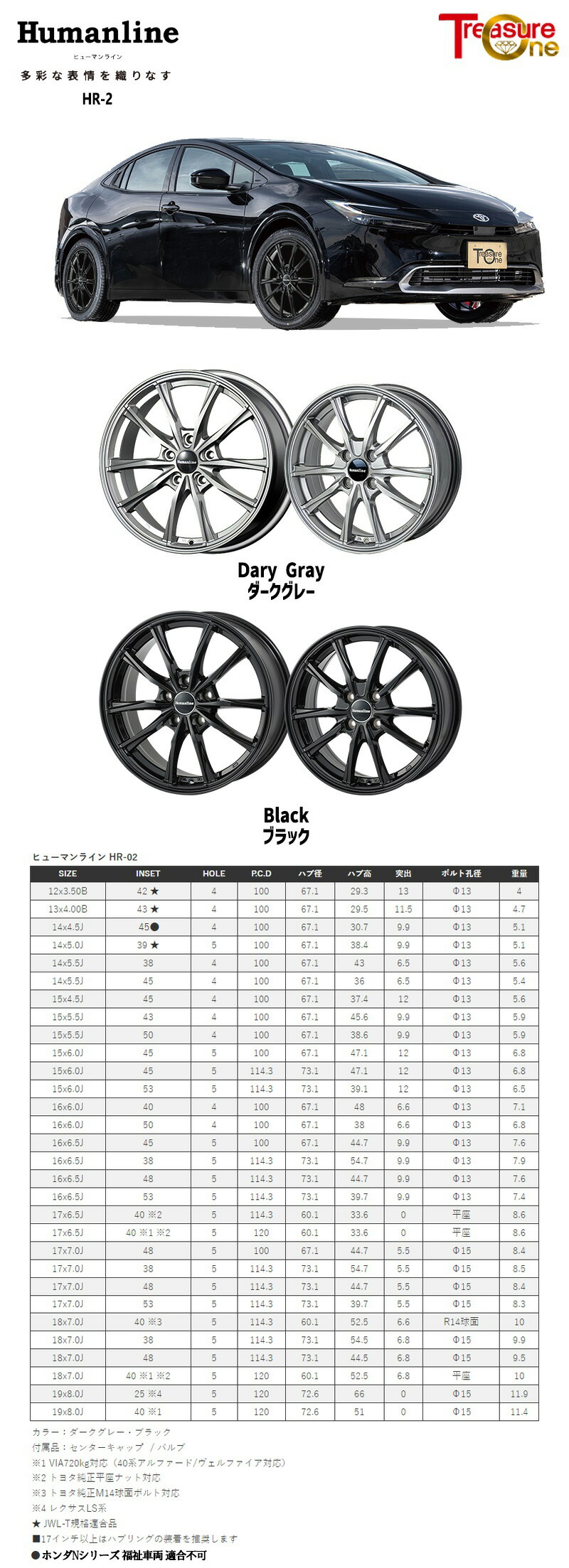 ホイールはサイズにより複数設定が御座います。装着の可否が判断出来ない場合は、車輌情報にお車の情報(車種、年式、型式)の記載をお願いします。装着可能な設定で手配致します。
