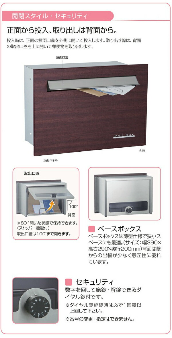 薄型なのでエントランスにスタイリッシュな印象を与える埋込みポストです。