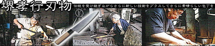 古来から権威の象徴とされてきた日本刀。厳選された鋼を幾重にも折り重ね鍛え上げた刃心は最高の切れ味と輝きを放ち魂が宿ると伝えられています。日本の和包丁とはまさに日本刀の流れを引き継いだ世界に誇れる芸術品でもあります。細部に渡る仕上げのクオリティーは上質な包Tを作り出す職人のプライドでもあり先代より脈々と受け継がれてきた伝承の技でもあります。世界に類をみない独自の形状を持つ和包丁は魚や野菜など異なった食材を切る為に生み出された刃物であり繊細な日本料理には欠かす事の出来ない包丁です。600年の歴史を持つ堺刃物の伝統を守り続ける堺孝行ブランドをぜひ一度お手にとり世界に誇れる匠の技に触れて頂く事をスタッフー同願っております。 |