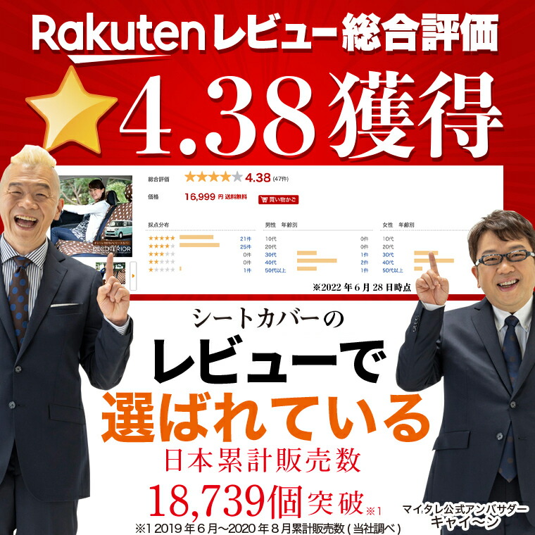 | 購入者さん 総合評価:★★★★★ 素敵です! ダイハツのミライース用にベージュチェックを購入しました。 昨日、届いたので今朝、取り付けました。さすがに3分では取り付け出来ませんでしたが楽しみながら取り付け完了! 車内が明るく、オシャレになりました。 ミライースの後部座席は分離型ではなく一体型なので取り付けを心配していましたが、付属の「挟み込みパーツ」により座面もしっかり固定できました。 デコテリアの説明書を見ると、この「挟み込みパーツ」のことが詳しく説明されています。 購入検討の方はこの説明書を事前に読まれることをおすすめします。携帯のQRコード経由ではなく、直接リンクされていると親切だなと思いました。 シートの裏面はどこでもマジックテープが付くので便利です。また前の座席の後ろの小物入れもありがたいです。 ヘッドレスト用カバーに用途が説明されていないゴムテープが付いていますが、このゴムテープを通してからマジックテープで固定したほうが後ろ側シートの浮き上がり防止になります。 午後から浮き浮き気分でドライブに行ってきます。 |