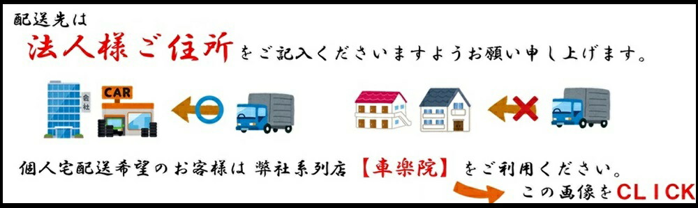 【重要】送り先ご住所がカーショップ、整備工場、その他法人様宛の場合のみ送料無料となります。ご注文時には法人様ご住所でご注文いただきますようお願いいたします。