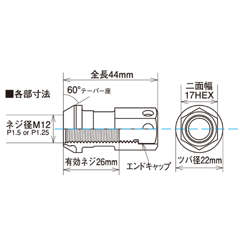 有効ネジ: 約26mm(エンドキャップを装着した場合)